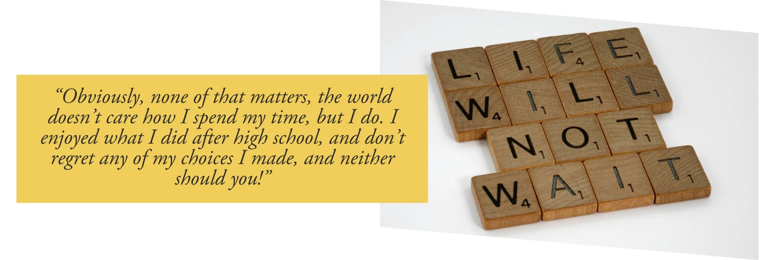 You are not wasting your time, you’re here right now to learn and become a different person, and that is worth every second. So, if you came to Sheridan later in life, you made the right choice. And if you decided to come to Sheridan right out of high school, you also made the right choice.