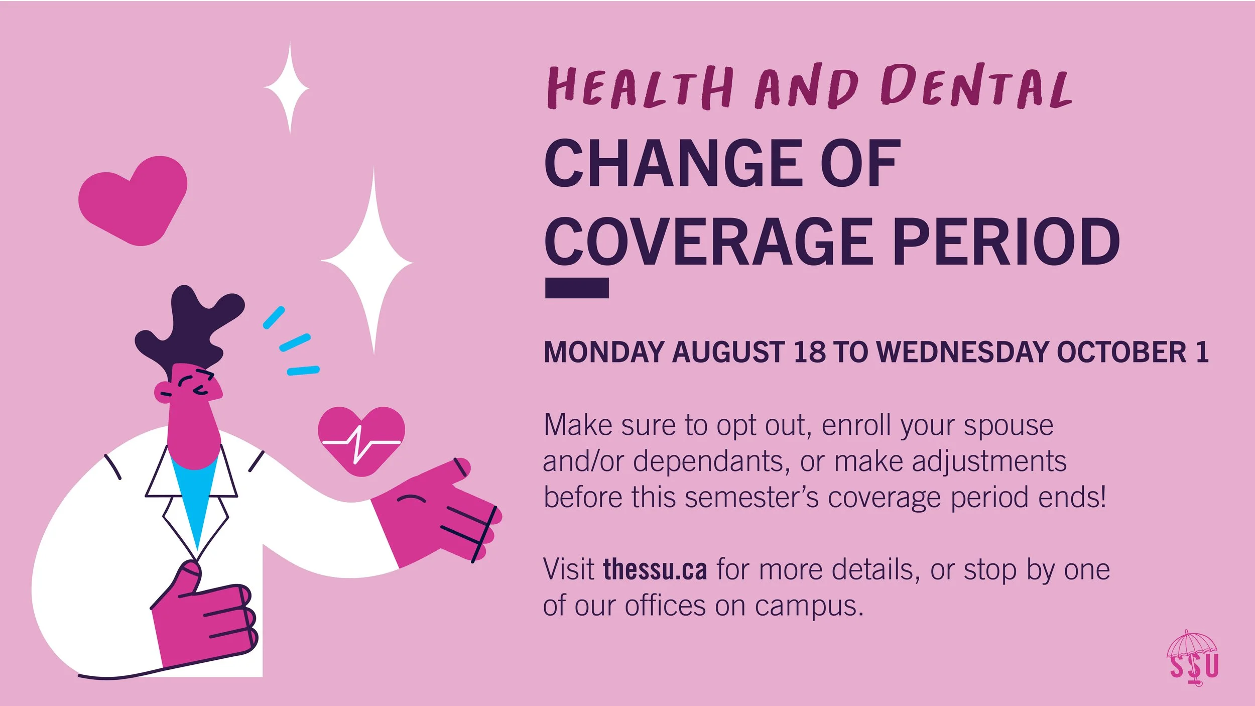 Simply put, the Change of Coverage period is the only time of the year when Sheridan students can make changes to their Health and Dental Insurance. Here are the changes you can make: