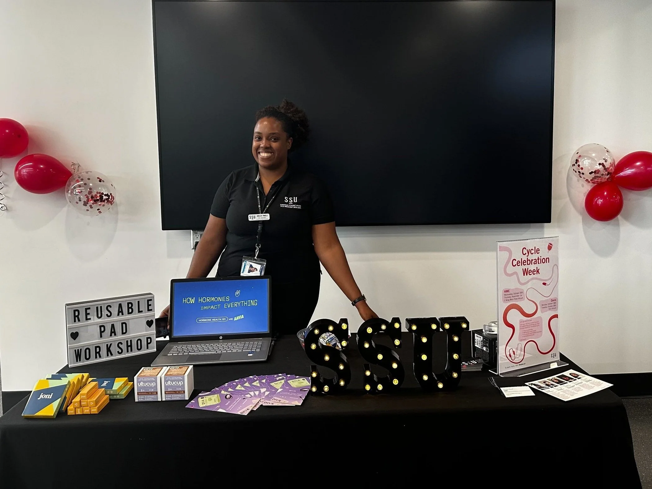 Representatives from The Period Purse smile with SSU staff members, as part of Cycle Celebration Week