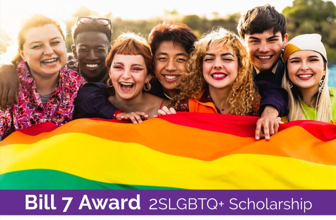 The Bill 7 Award is a $4,000 scholarship available to students with demonstrated financial need, who identify as gay, lesbian, bisexual, trans, queer or two-spirit and are completing their first postsecondary program.