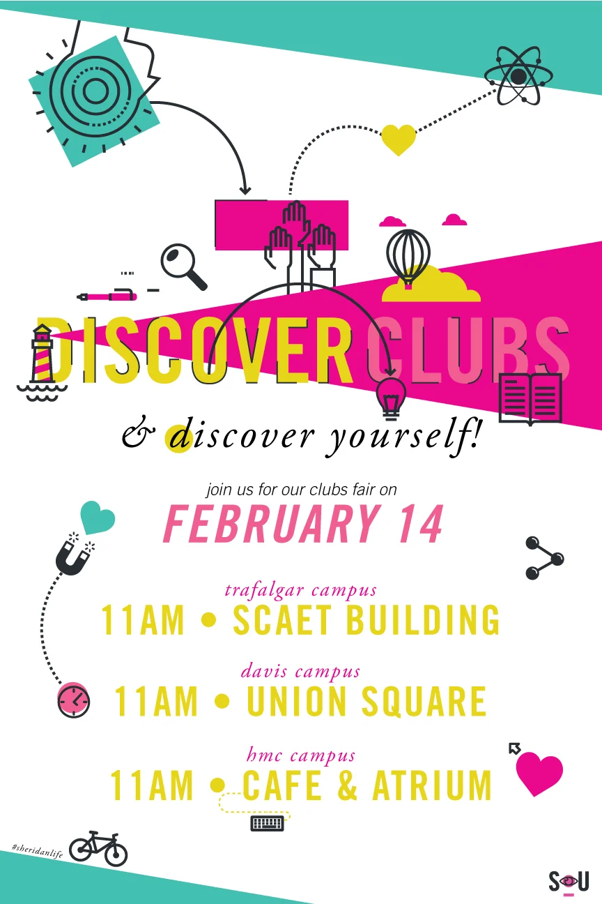 Join us at our Clubs Fair! It's your time to discover all the clubs we have on campus. Get the chance to join a club or learn more about what each club has to offer!