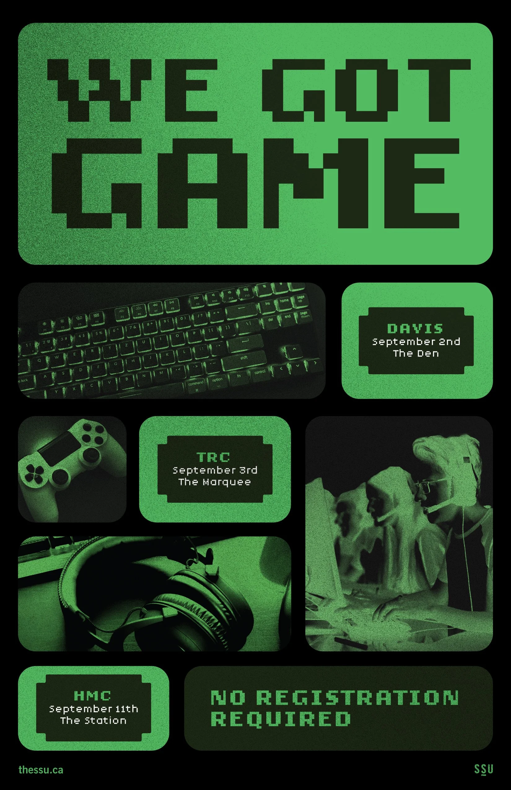 Turn your esports mode on and enjoy an afternoon packed with gaming consoles on campus! 🎮 Whether you’re a newbie to esports or have been smashing buttons since day one, SSU and We Got Game! are bringing a day of fun, interactive video games to all campuses.